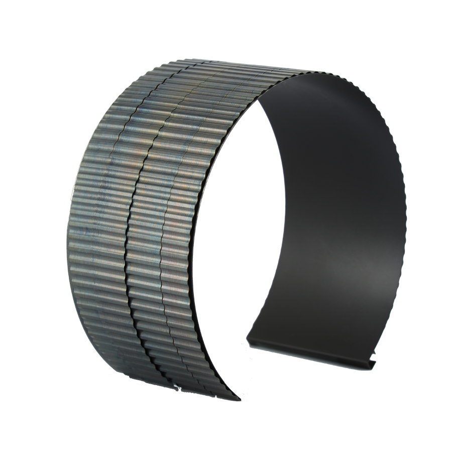 pg电子官方网站轴承由单层光滑的顶层平箔片和波纹结构的弹性波箔片等组成。顶层平箔片提供轴承工作的内表面,安装在波箔片上面,波箔片沿轴承座内表面安装,为顶层平箔片提供弹性支承并控制着轴承的表面支承刚度,波箔片和平箔片一端被固定在轴承壳体上,另一端沿轴承壳体内壁面自由伸展。顶层平箔片与转子间采用耐高温的涂层技术,能够有效降低转子与轴承间启停和碰磨时的摩擦磨损。